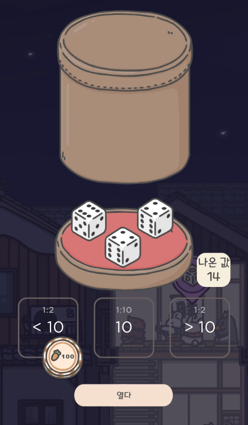 주사위를 눌러 미니 게임을 해보았다.