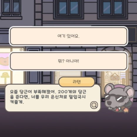 술을 마시고 있는 왼쪽 쥐를 눌러서 대화를 시도해 본다.